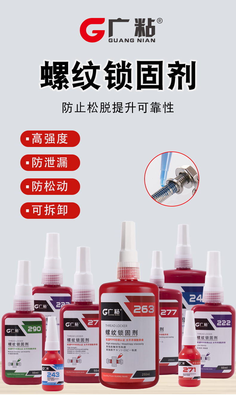 廣粘膠業有限公司生產銷售厭氧膠,螺絲膠,抗咬合劑,密封膠,硅橡膠,瞬干膠,修補劑,UV膠,PP膠水,AB膠,502膠水,預涂膠,螺紋鎖固劑生產廠家,電話:4000-080-502,膠水廠提供膠水批發,膠水加盟以及膠水代理商服務