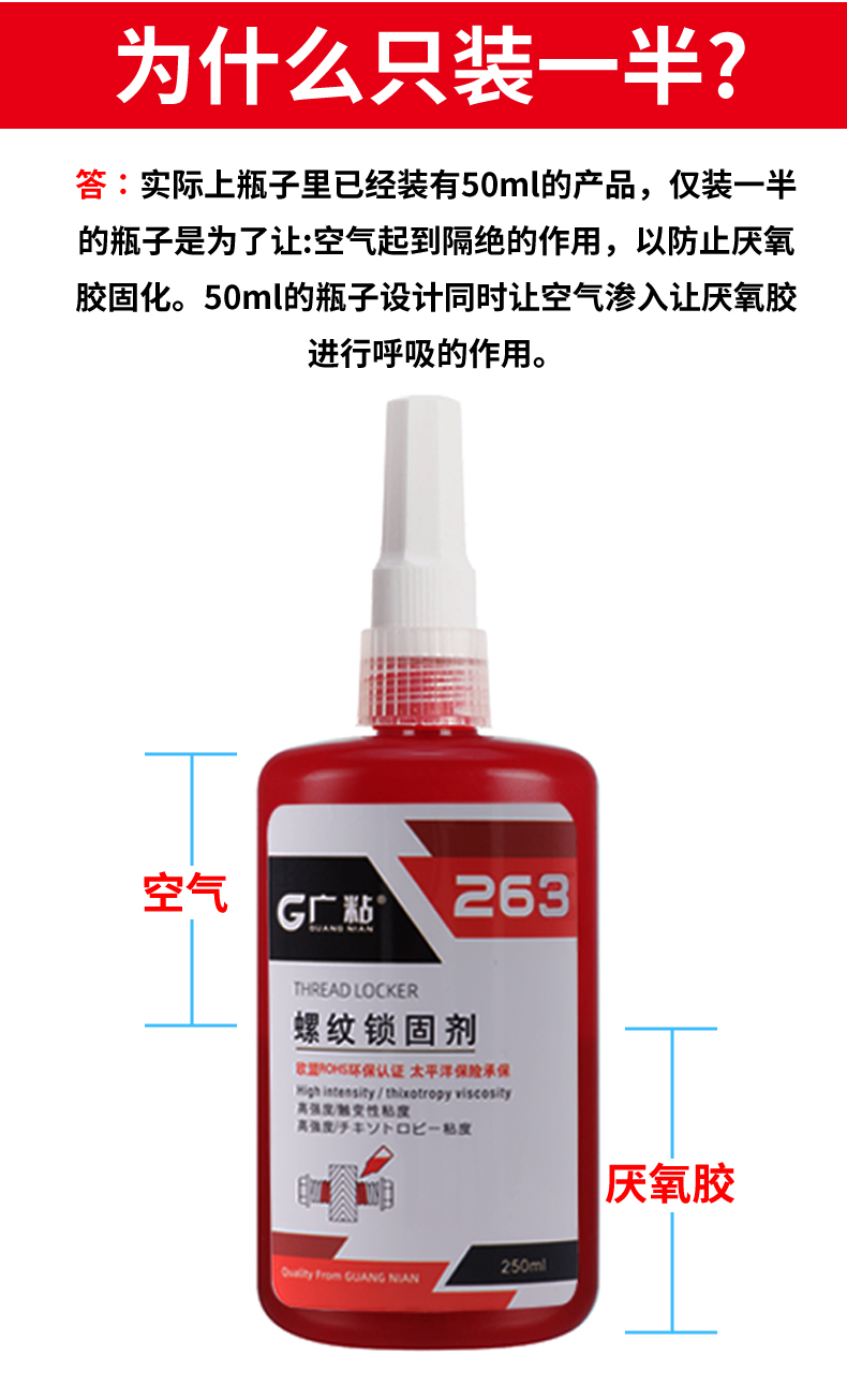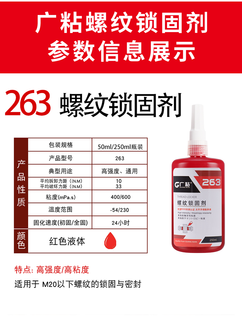 廣粘263厭氧膠高強度螺絲鎖固膠紅色螺絲防松膠