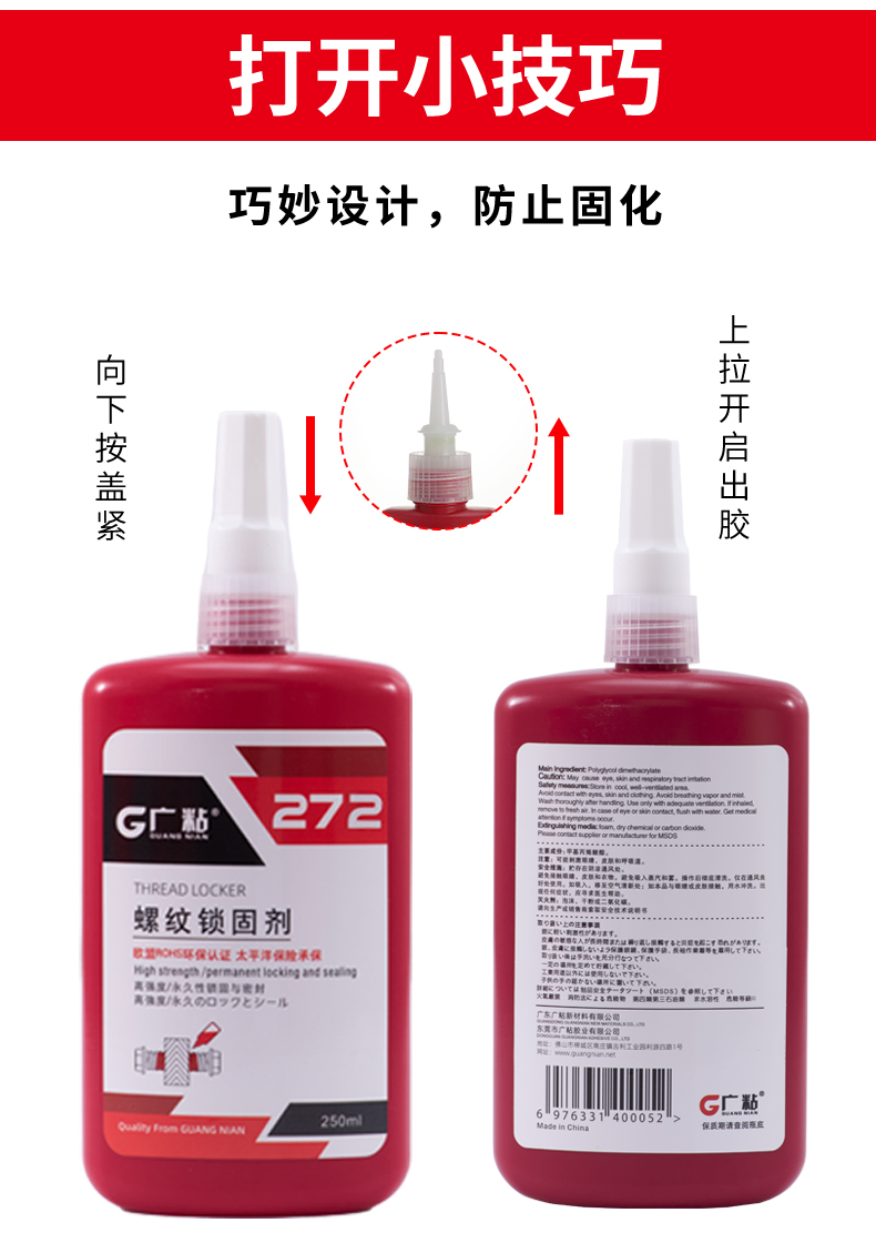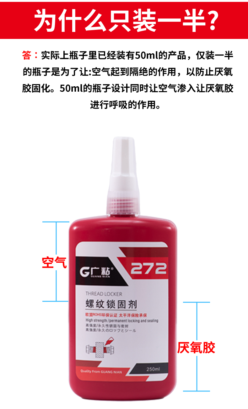 廣粘272螺絲膠高強度耐高溫螺紋鎖固劑厭氧膠