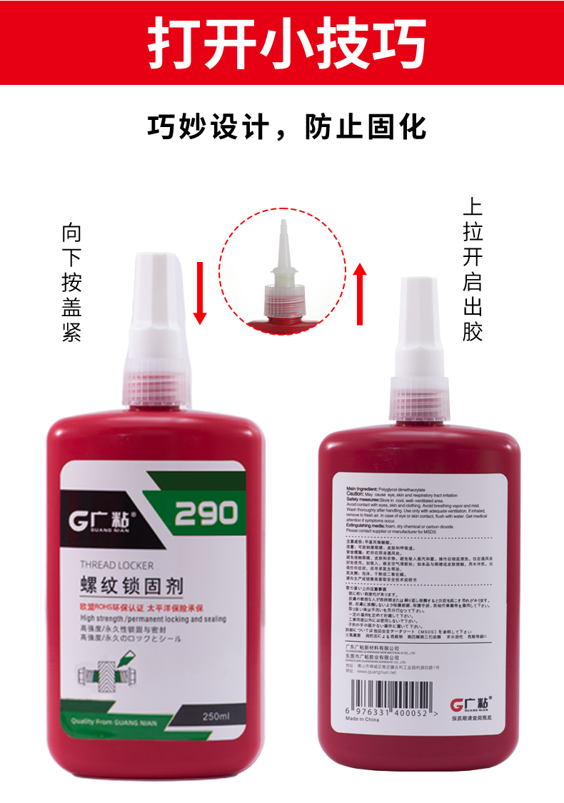 廣粘290厭氧型螺絲膠綠色滲透級螺紋鎖固劑