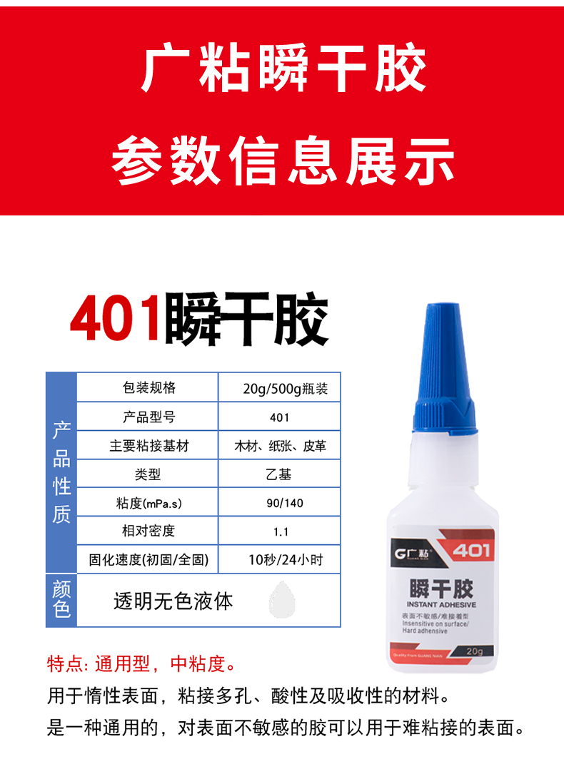 廣粘401瞬干膠中粘度通用型快干膠