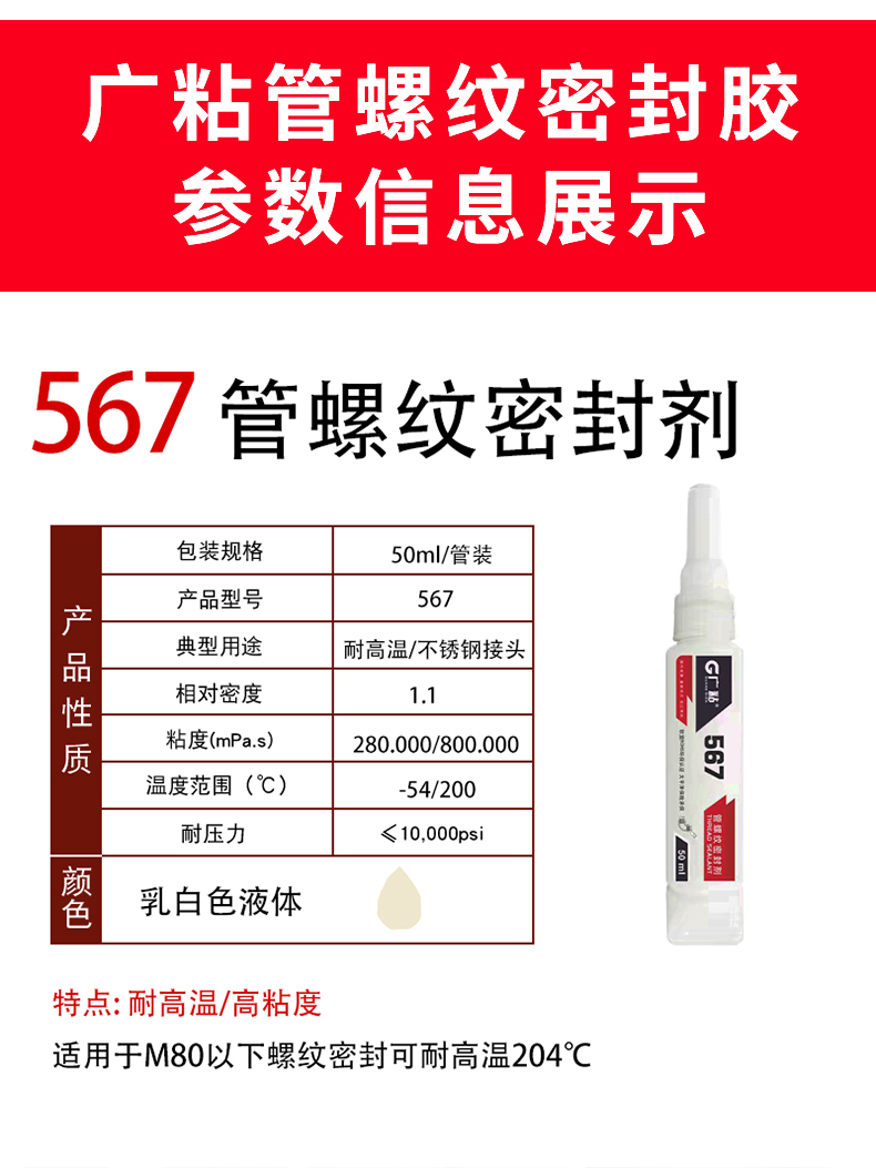 廣粘567管螺紋密封膠耐高溫高粘度密封膠