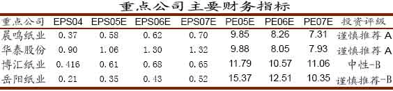 維持對晨鳴紙業、華泰股份“謹慎推薦”的評級。基于岳陽紙業豐富的林地資源優勢,上調該公司評級至“謹慎推薦”。