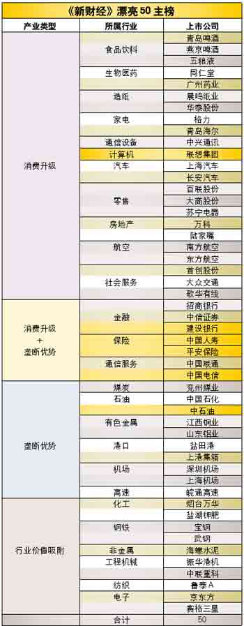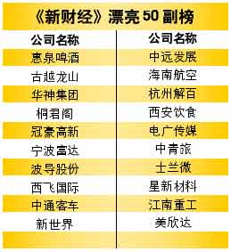 按照前述漂亮50的“選美理念”、“產業理念”和“公司理念”,《新財經》隆重推出了2005年《新財經》漂亮50名單。