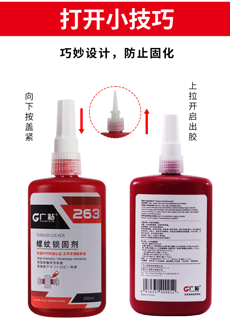 廣粘263厭氧膠高強度螺絲鎖固膠紅色螺絲防松膠