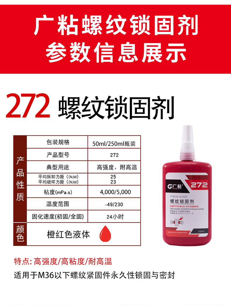 廣粘272螺絲膠高強度耐高溫螺紋鎖固劑厭氧膠