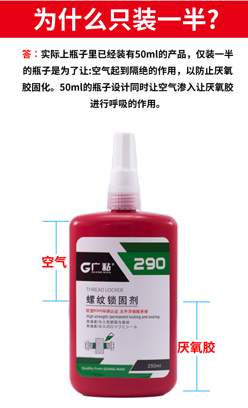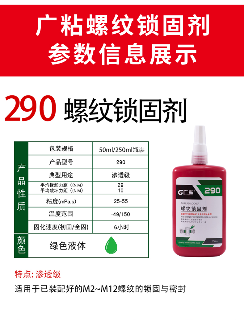 廣粘290厭氧型螺絲膠綠色滲透級螺紋鎖固劑