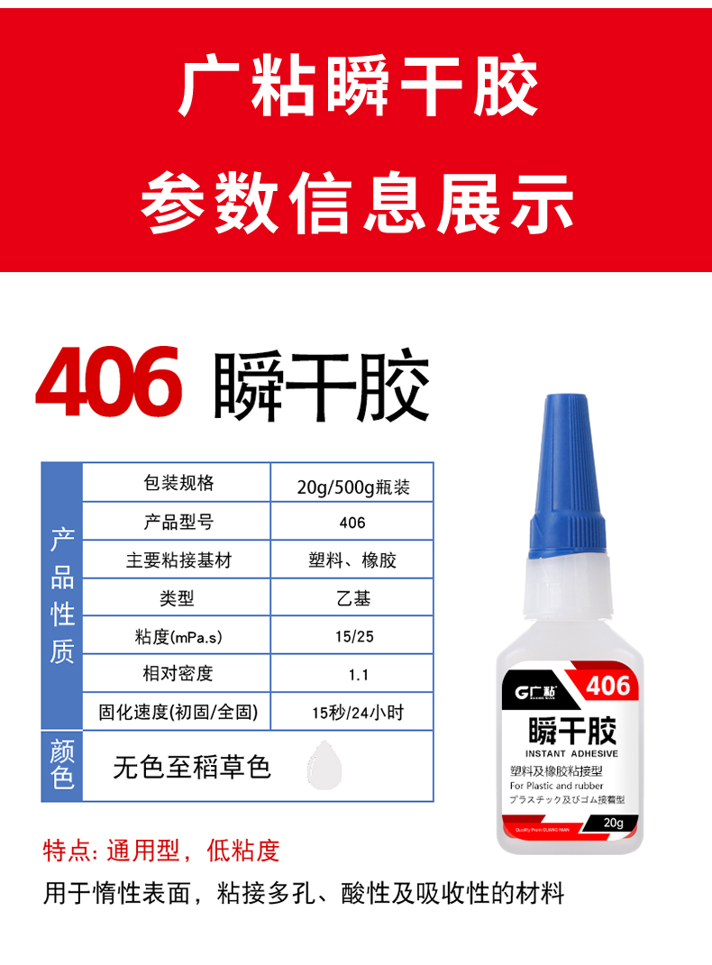 廣粘409瞬干膠金屬塑料橡膠粘接快干膠