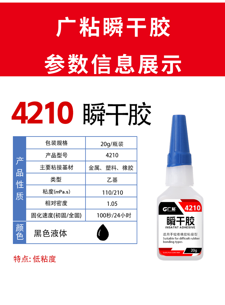 廣粘4210瞬干膠耐熱型中粘度耐沖擊耐高溫速干膠快干膠
