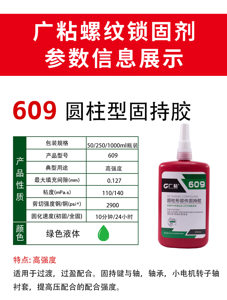 廣粘609圓柱型固持膠高強度低粘度軸承膠