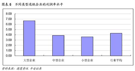 產品結構和產能規模的差異,正在加速導致行業內各公司的分化。自2000 年以來,全球大型紙機的訂單每三臺中就有兩臺來自中國,造紙企業產能的不斷擴張和產品檔次的提升已進入了白熱化的階段。產能提升引發國內造紙行業愈發激烈的市場競爭。以上市公司為例,晨鳴紙業、華泰股份等新星造紙企業不斷擴大規模,調整產品結構,盈利水平和市場競爭力不斷上升,而吉林紙業、ST 佳紙等公司連續虧損。競爭將促使行業進一步整合,在此過程中,一批具有規模優勢、資本優勢的企業將得到跳躍式發展,成為有國際競爭力的企業。